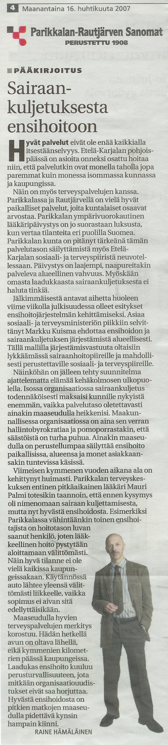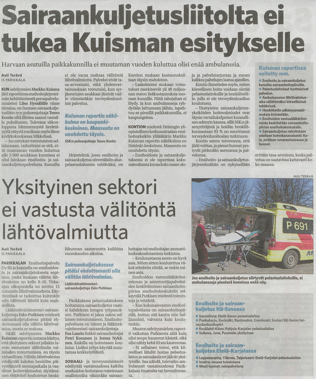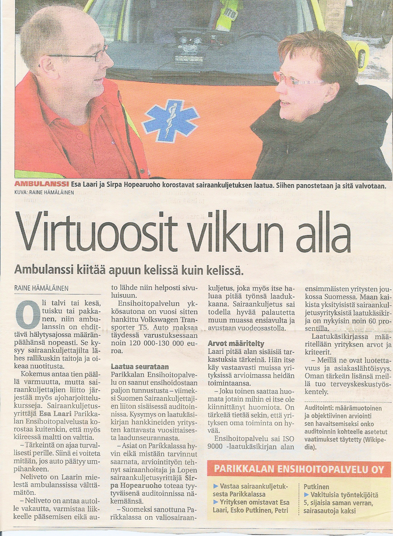 Parikkalan Ensihoitopalvelu Oy mediassa: